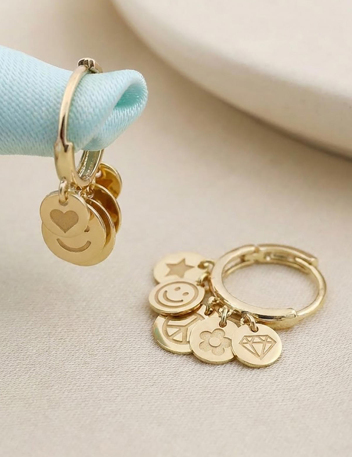 14 ayar sarı altın ile ürettiğimiz; Neşeli Altın Halka Küpemiz tamamen parlaktır. Üzerine ekleyebileceğimiz harf ve emoji kombinasyonları ile kendinize özgün tasarıma kavuşturabilirsiniz. İster kendinizi şımartmak için, ister sevdiklerinize sonsuza dek saklayacakları özel bir hatıra bırakmak için mükemmel bir tercih.
