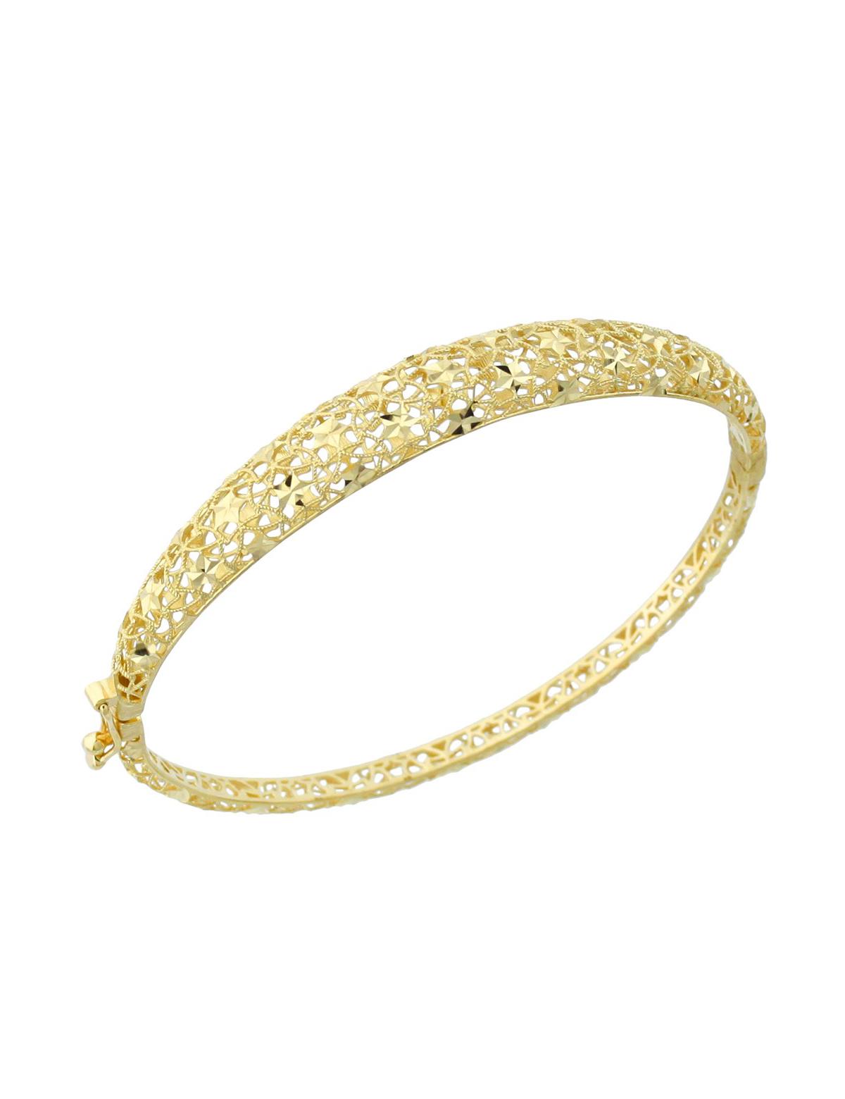 14 Ayar sarı altın ile ürettiğimiz Kelepçe Tasarım Telkari Bilezik 'imiz tamamen parlak ve soft bir duruşu vardır. Kelepçe modelimizin üzerinde yer alan minik yıldızlar güncel bir görünüm sunmuştur.