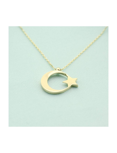 14 Ayar Altın Ay Yıldız Kolye resmi