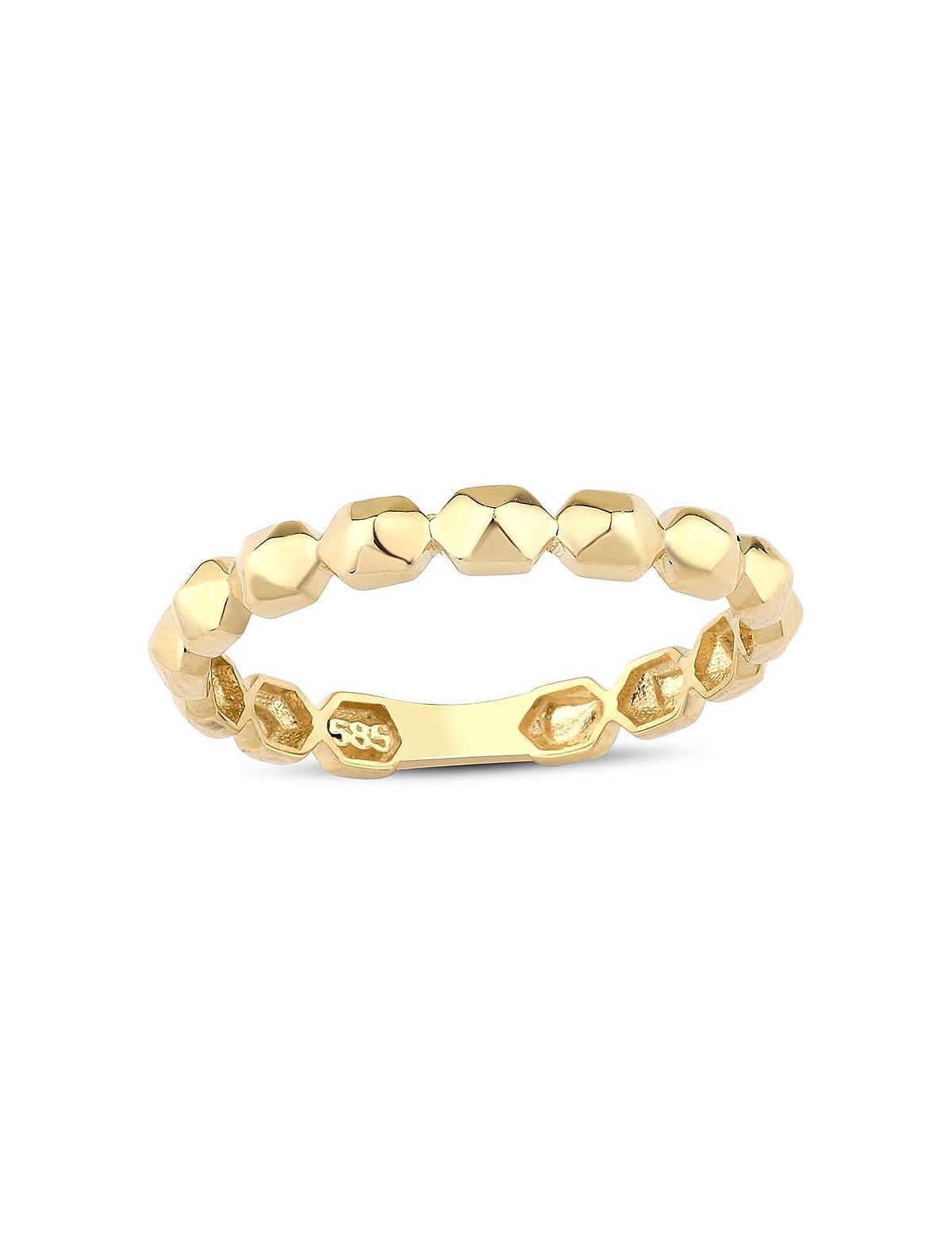 Geometrik altıgen desenlerden oluşan bu modern eklem yüzüğü, 14 ayar sarı altından üretilmiştir. Hafif ve şık tasarım, her kadının günlük hayatında rahatlıkla kullanabileceği, özgün bir yüzük modelidir.