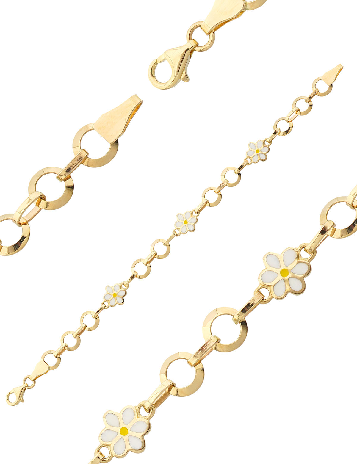 14 ayar sarı altın ile ürettiğimiz; Beyaz Çiçek Altın Çocuk Bileklik tamamen parlaktır. Aslında Garson Boy Altın Bileklik de diyebiliriz. Çünkü zincirin dilediğiniz halkasından kilidini bağlayarak 2-15 yaş arası kullabileceğiniz bir Altın Çocuk Bileklik 'tir. Eğlenceli takıları kullanmak isteyen kadınlar da istedikleri ölçüde sipariş edebilecekleri bir Altın Bileklik 'tir.