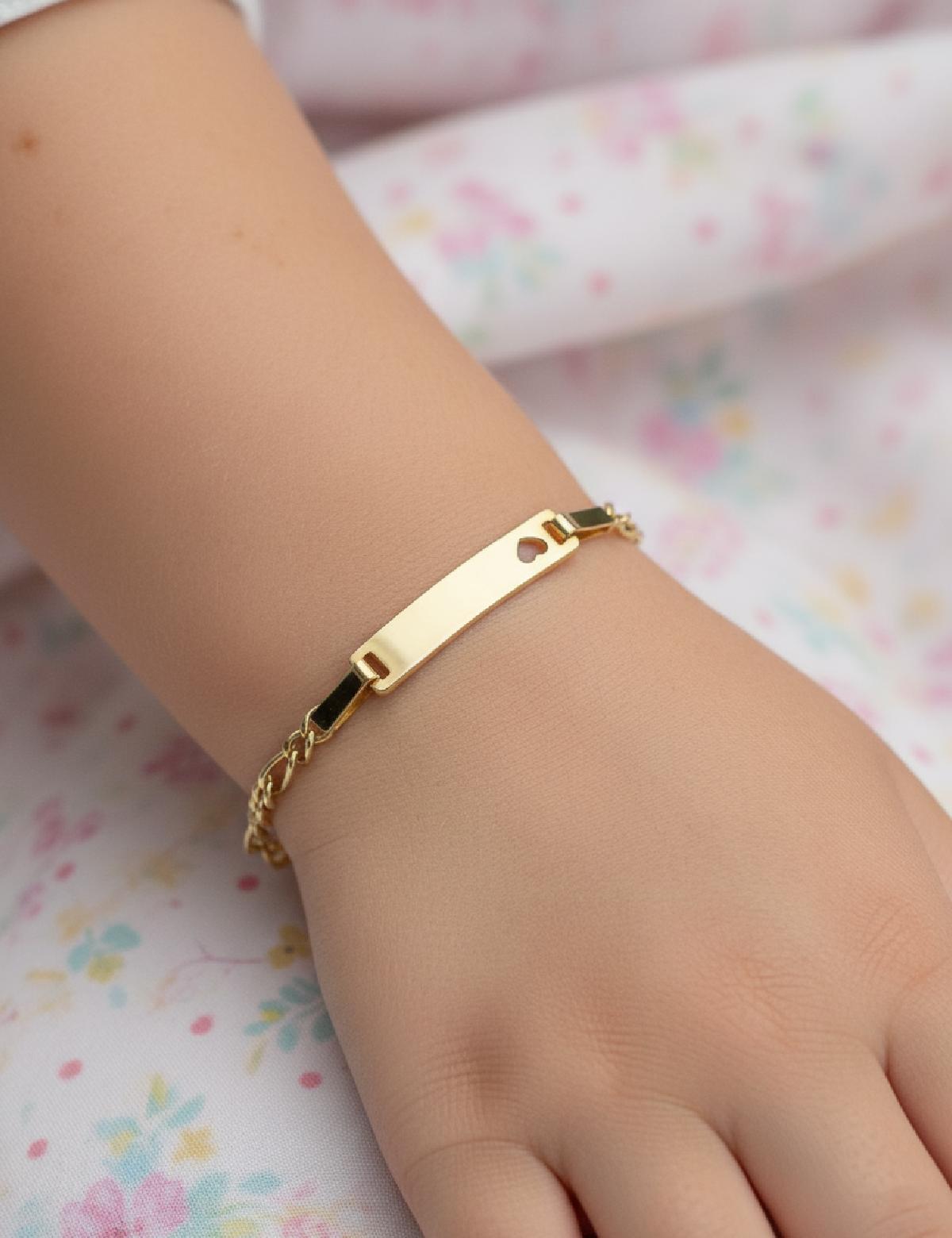 • Altın Bebek Künye Bileklik-Kalp Figürlü