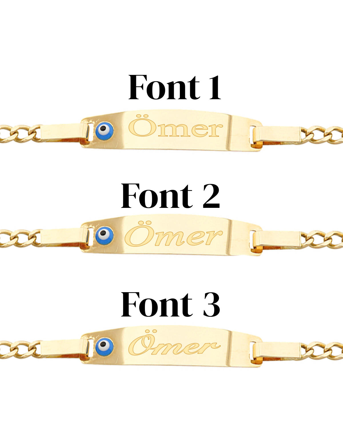 14 ayar sarı altın ile ürettiğimiz Altın Bebek Künye-Nazar Boncuklu modelimiz tamamen parlaktır. Plakalı çocuk künyemizin avantajı, zincir üzerindeki geniş halkalarına kilidinin takılabilmesidir. Böylelikle bebeğiniz farklı yaşlarda kullanabilecektir.