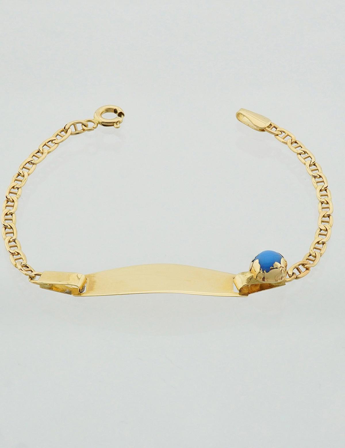 14 ayar sarı altın ile ürettiğimiz; Mavi Boncuk Nazarlık Altın Çocuk Künye Bileklik tamamen parlaktır. Aslında Plakalı Bebek Künye 'si olarak da ifade edebiliriz. Çünkü zincirin dilediğiniz halkasından kilidini bağlayarak 0-12 yaş arası kullabileceğiniz bir Altın Çocuk Bileklik 'tir. Dilediğiniz yazı karakteri ile üzerine yazmamızı talep edebilirsiniz.