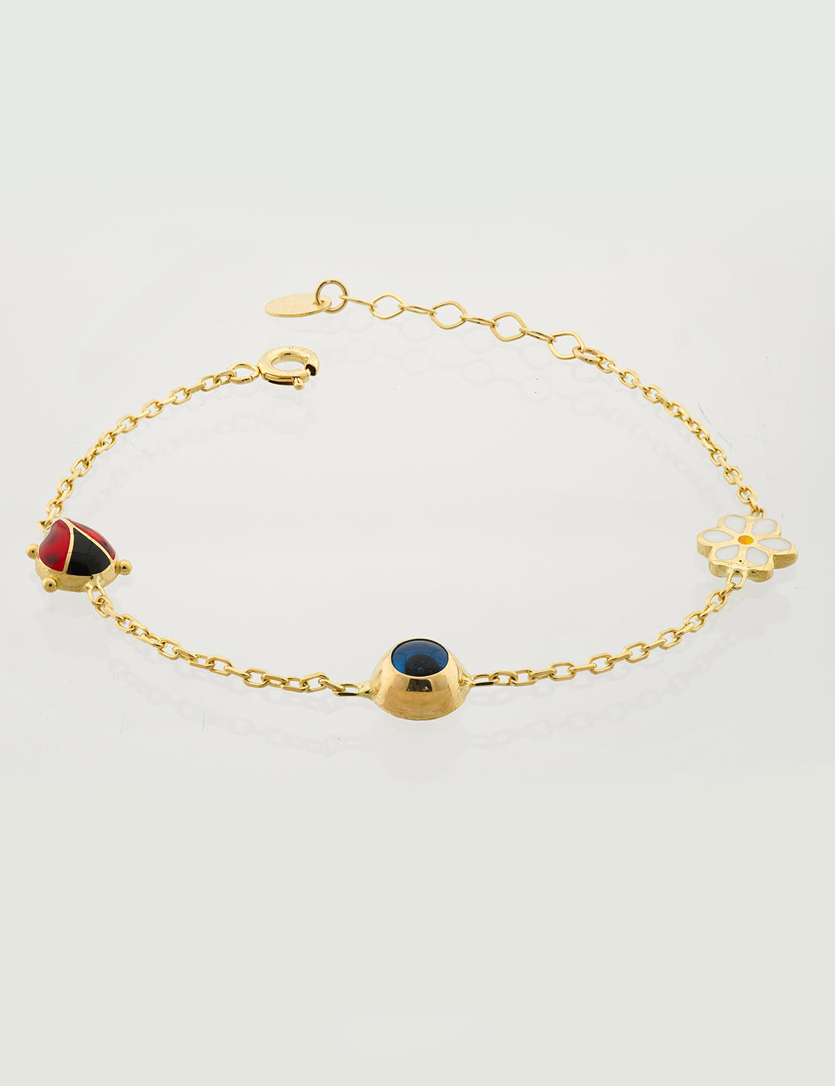 Mineli Çocuk Bilekliği - Uğur Böceği, Nazar Boncuğu, Çiçek