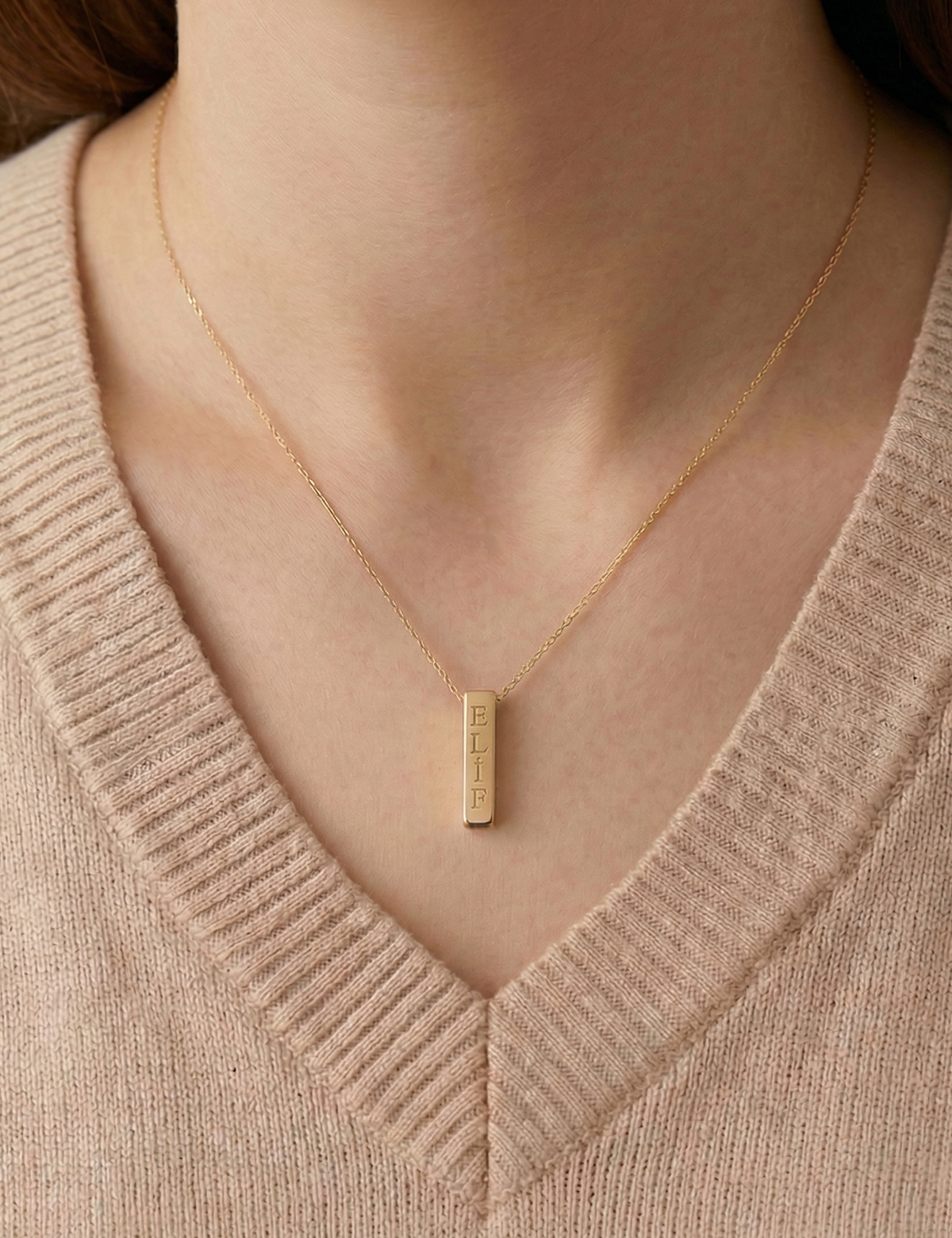 • 14 Ayar Altın Kare İsimli Çubuk Kolye