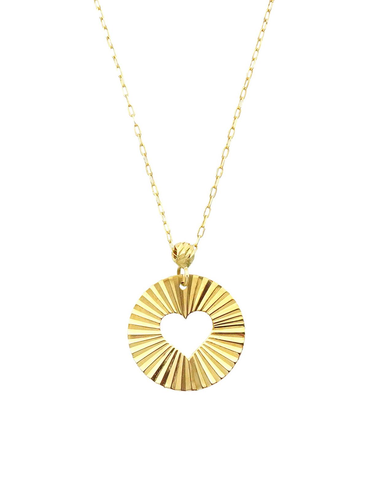 Altın bir dairenin ortasından özel bir teknik ile kalp motifimizi çıkarttık ve ardından ince kalem işleri ile parlattığımız Kalemli Plaka Kalp 14Ayar Altın Kolye 'miz çok parlak. 14 ayar sarı altın renginde ürettik. Çalışan kadına hediye, sevgiliye hediye, sevdiğinize hediye almayı düşünenenlere kibar ve parlak bir gülümseme...