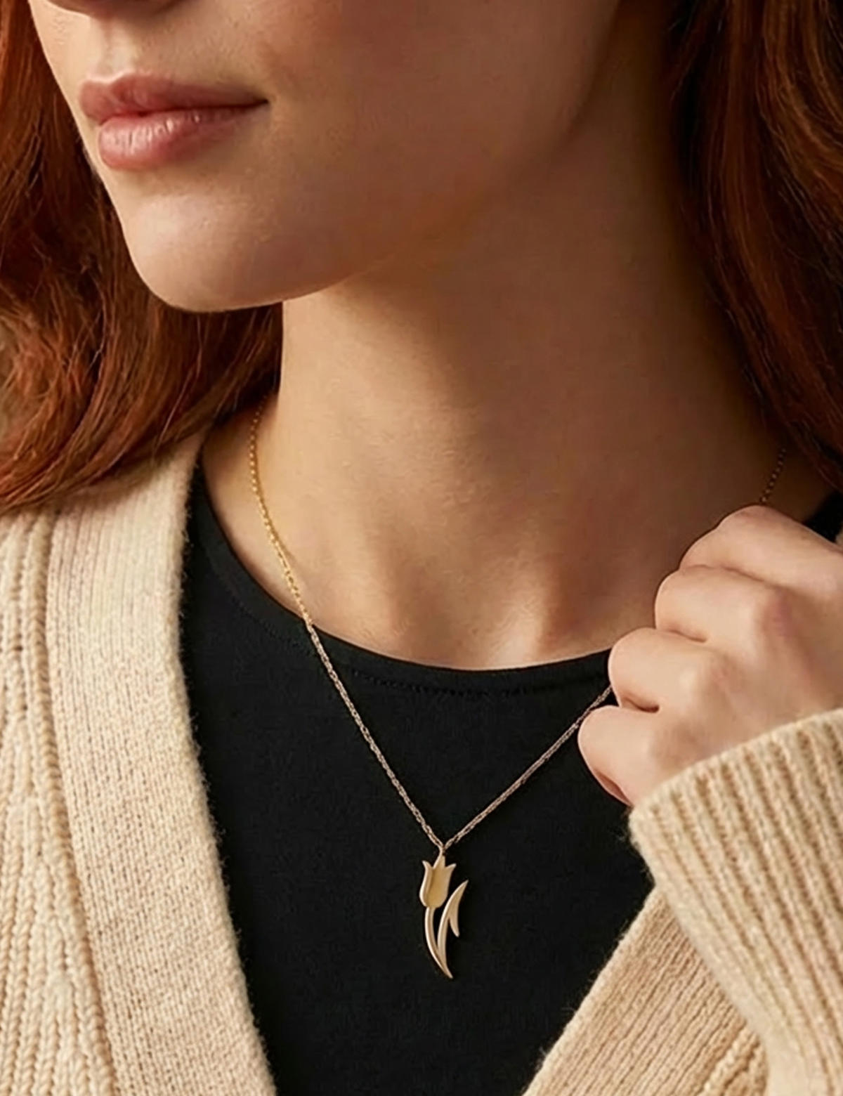 14 ayar sarı altın ile ürettiğimiz; Altın Lale Kolye tamamen parlaktır. Düz bir plakadan kesilmiş gibi dursa da nisbeten daha fazla et kalınlığına sahip bir Minimalist Figürlü Kolye. Lale isimli ve lale ismi ile müsemma tüm kadınlar için gün içinde veya çalışırken kıyafetlerinizle rahatlıkla kombinleyebileceği bir altın kolye.