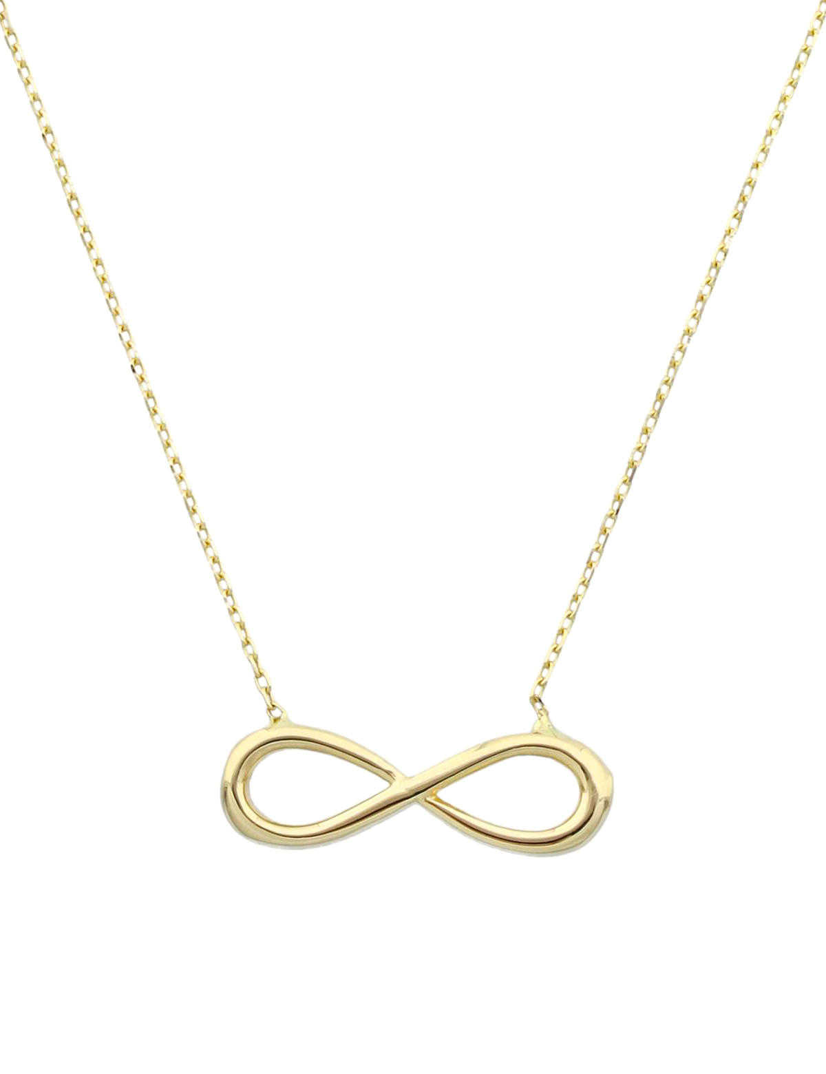Zarif hatlı 14 Ayar Altın Sonsuzluk Kolye 4N31130 'miz hafif bombeli hatları ile ışıldıyor. 14 ayar sarı altın renginde ve tamamen parlak ürettik. Her kadının gün içinde veya çalışırken takabileceği sempatik bir kolye.