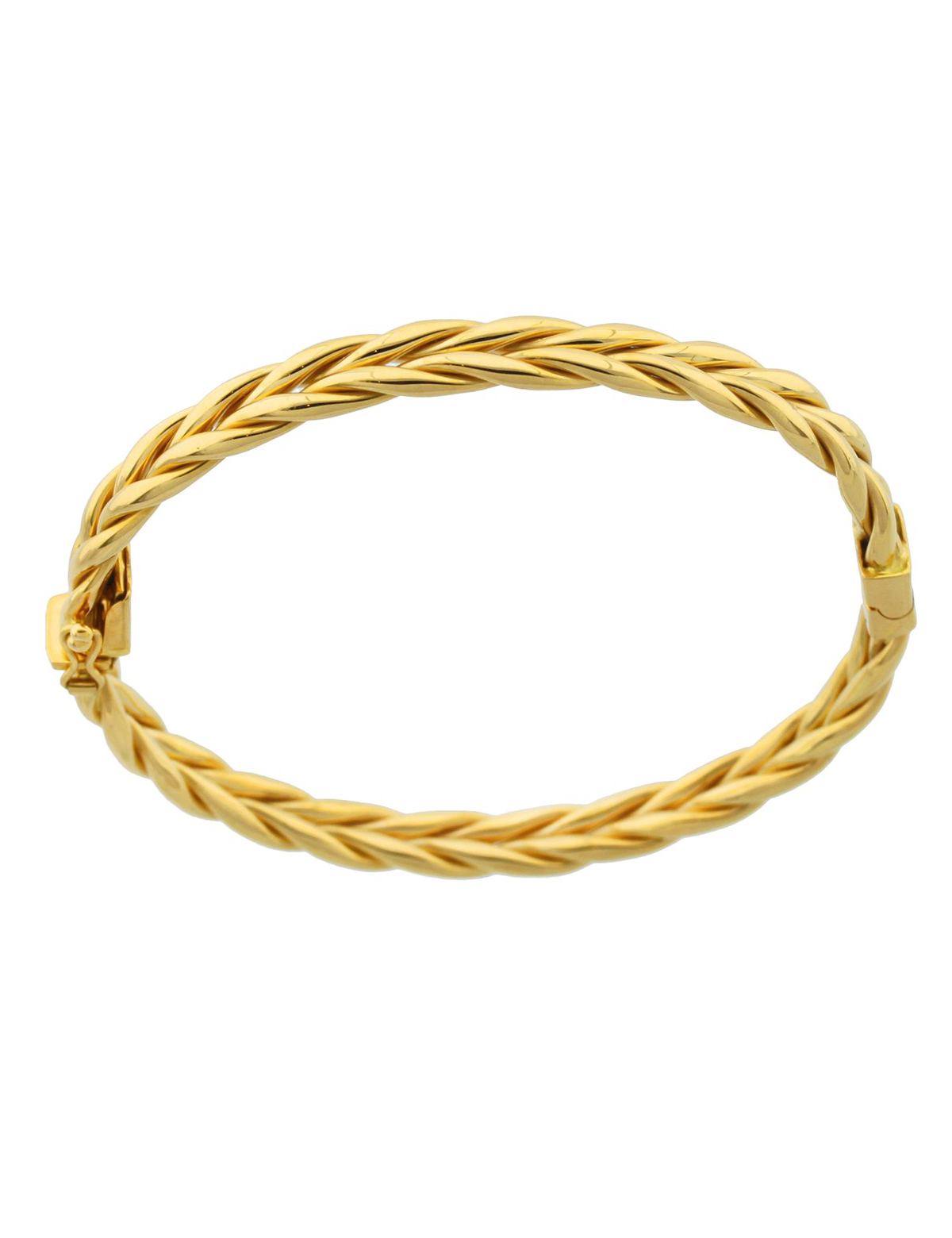 22 Ayar sarı altın ile ürettiğimiz Tasarım Kelepçe Bilezik 'miz tamamen parlaktır. Klasik burgu modellerinden kendini ayrıştıran marjinal bir görünüme sahiptir.  Gün içerisinde veya iş hayatınızda kullanabileceğiniz bir model.