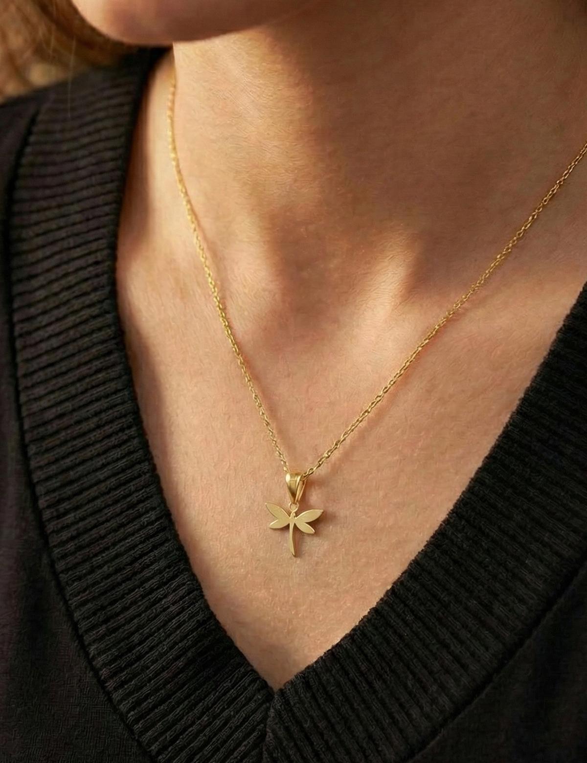 Parlak Yusufçuk Altın Kolye-14 Ayar