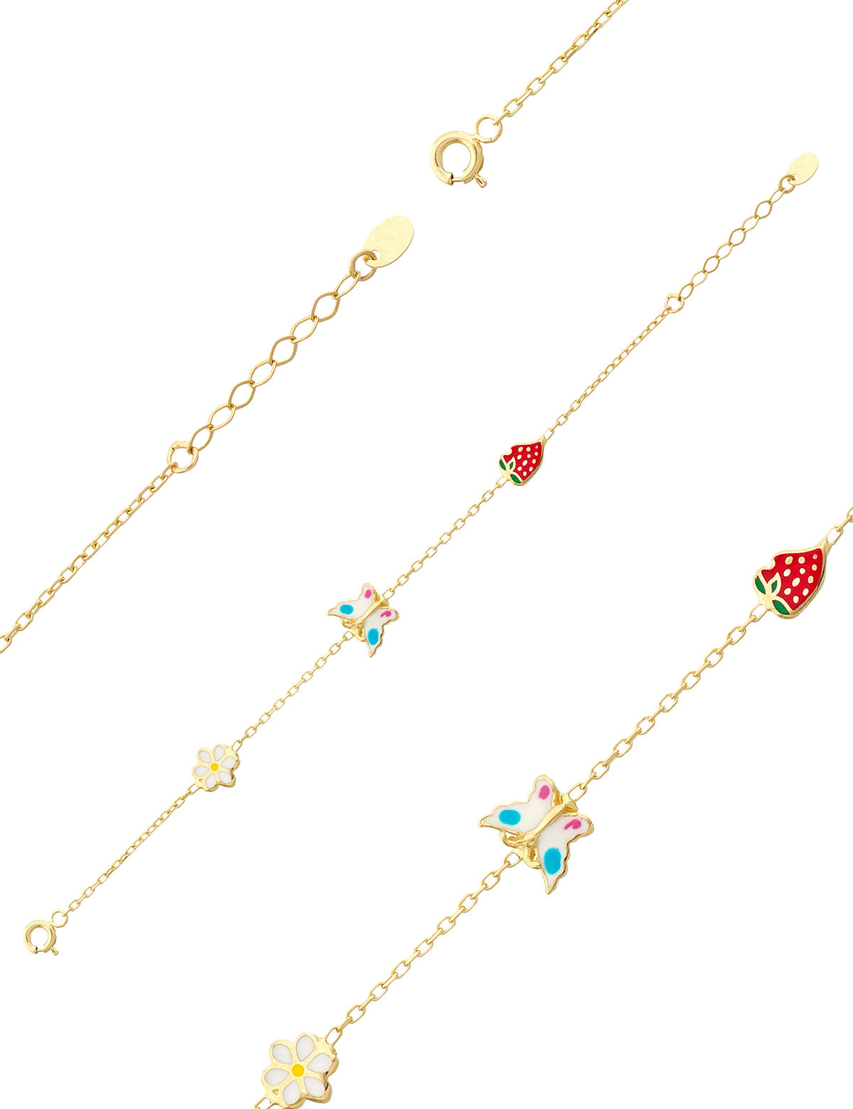 • Altın Mineli Çocuk Bilekliği - Papatya, Kelebek, Çilek Figürlü