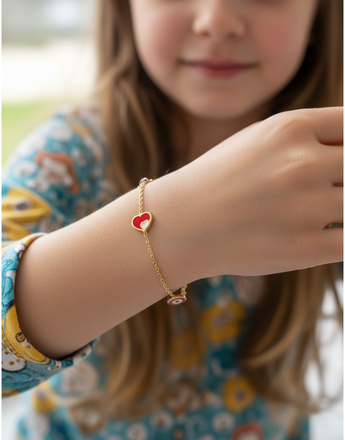 • Altın Mineli Çocuk Bilekliği - Uğur Böceği, Kalp, Nazar Gözü