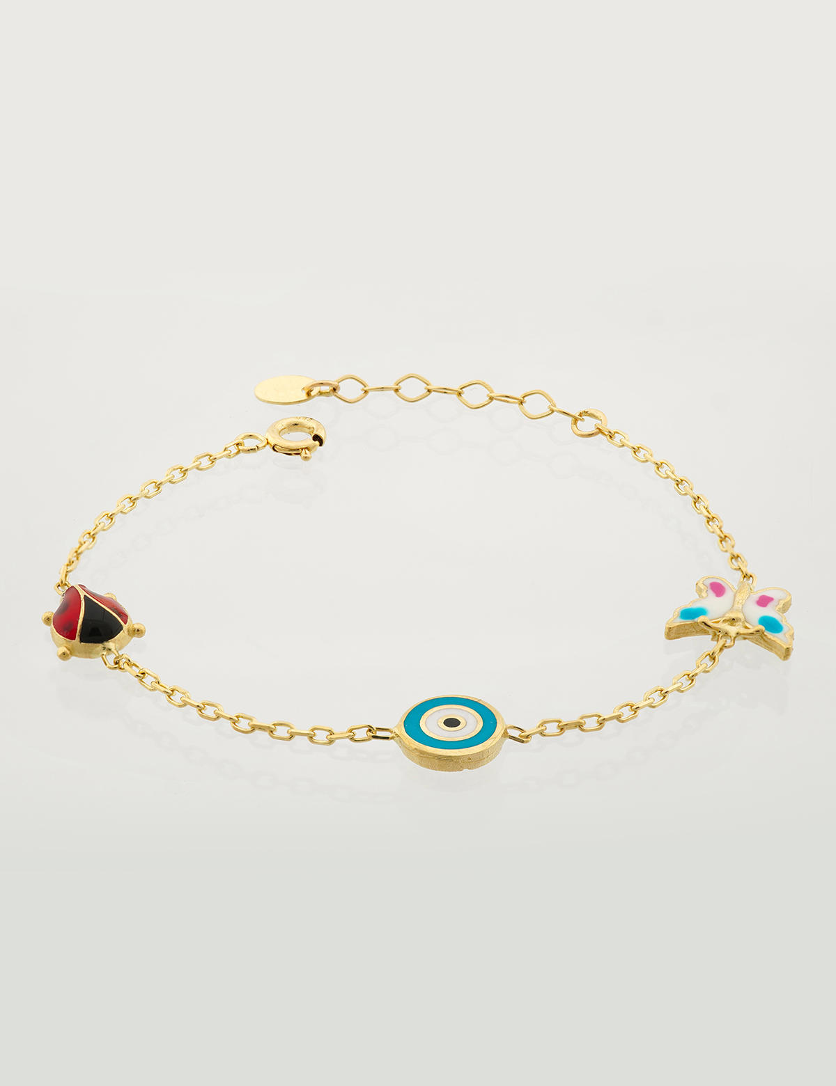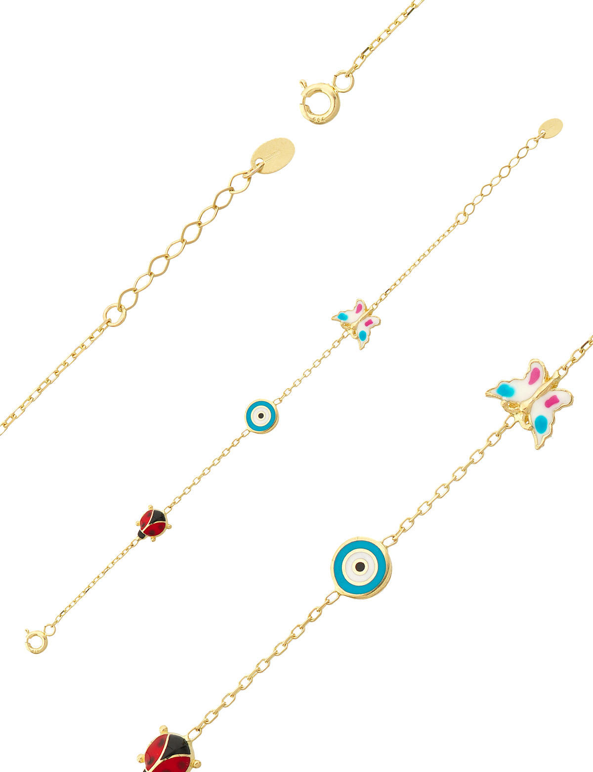 Altın Mineli Çocuk Bilekliği - Uğur Böceği, Nazar Gözü, Kelebek Figürlü