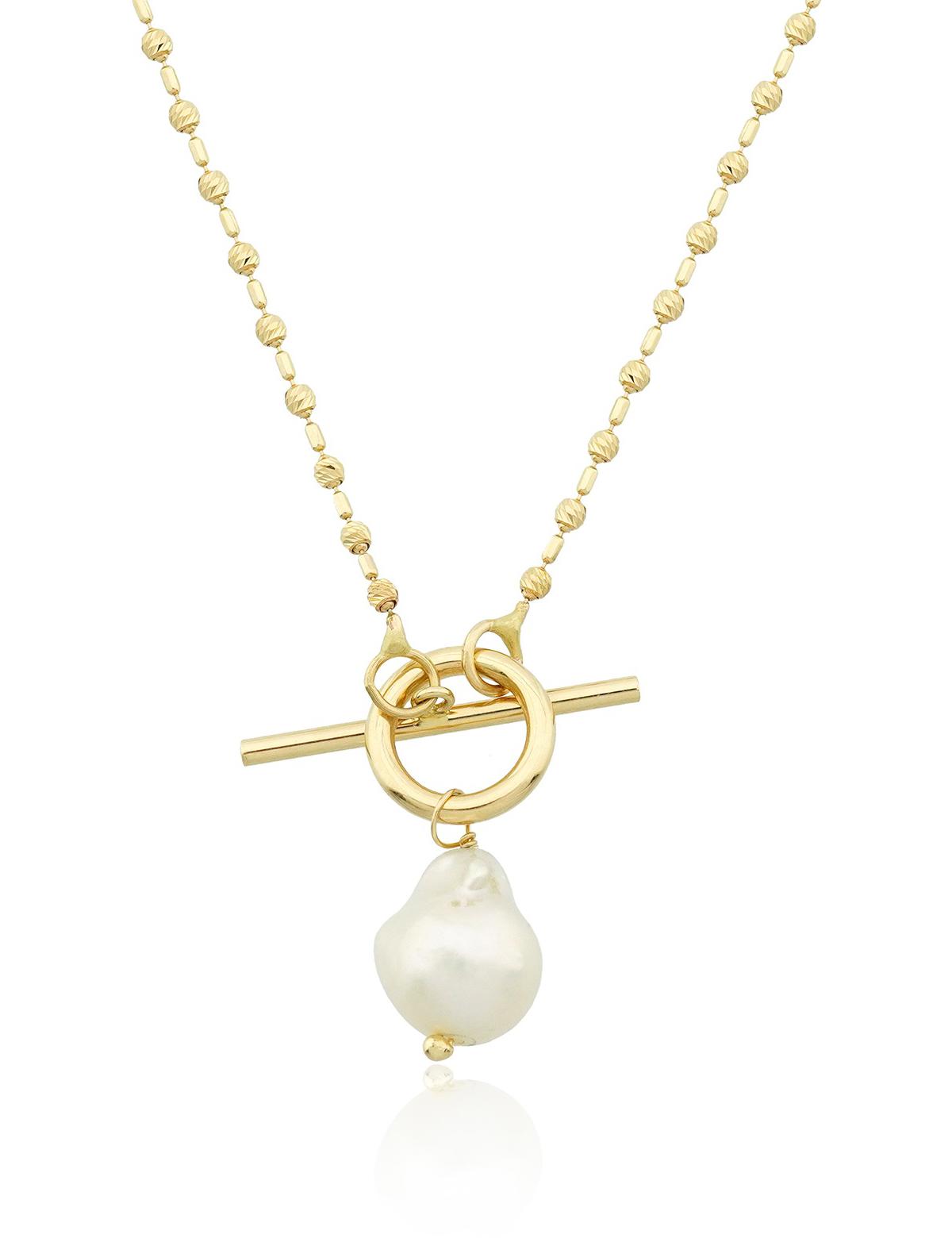 Barok İnci Modern T-Toka Altın Kolye-14 Ayar