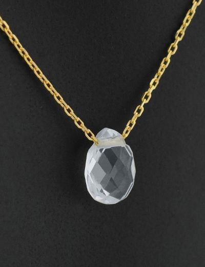 14 Ayar sarı renk altın ile ürettiğimiz, Doğal Beyaz Topaz Damla Taşlı Kolye ' miz fasetli kesimi ile her açıdan parlıyor. Gün içerisinde veya iş hayatınızda kullanılabilecek minimal bir kolye.