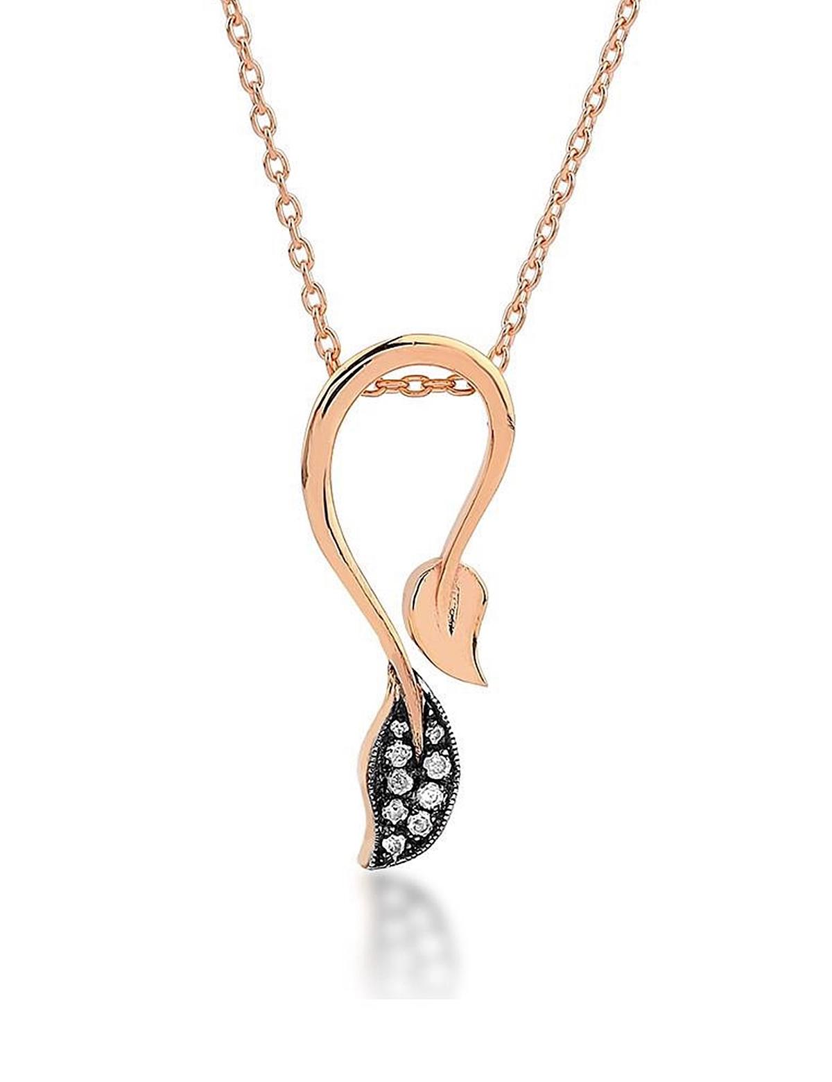 Birbirini seven iki kişi bir süre sonra " Pırlanta İkiz Yaprak Altın Kolye " mizdeki gibi hem birbirine benzer hemde güçlü bağlar oluştururlar ... Yıllanan sevgiler için güzel bir hediye... Sarmaşığın yapraklarını bağlayan dal kısmı oval ve dolgun hatları ile zengin duruyor. Rose ( açık pembe ) renkteki 14 ayar altın ile oksitlenmiş siyah hatlar çok uyumlu. Pırlantanın parıltısı bu uyumda daha iyi duruyor. Her yaştan kadının her an kullanabileceği müthiş bir zerafet...