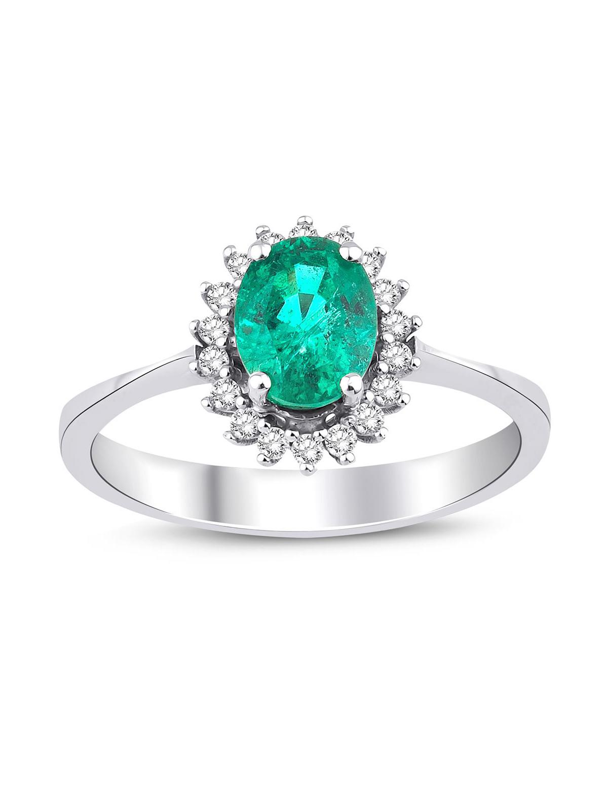 14 ayar beyaz altın ile ürettiğimiz Pırlantalı Anturaj Oval Tektaş Zümrüt Yüzük 'ümüz tamamen parlaktır. Beyaz altın ve doğal zümrütün uyumu harika. Mücevher seven kadınların hep üzerlerinde taşımak isteyecekleri zarif bir Zümrüt yüzük.