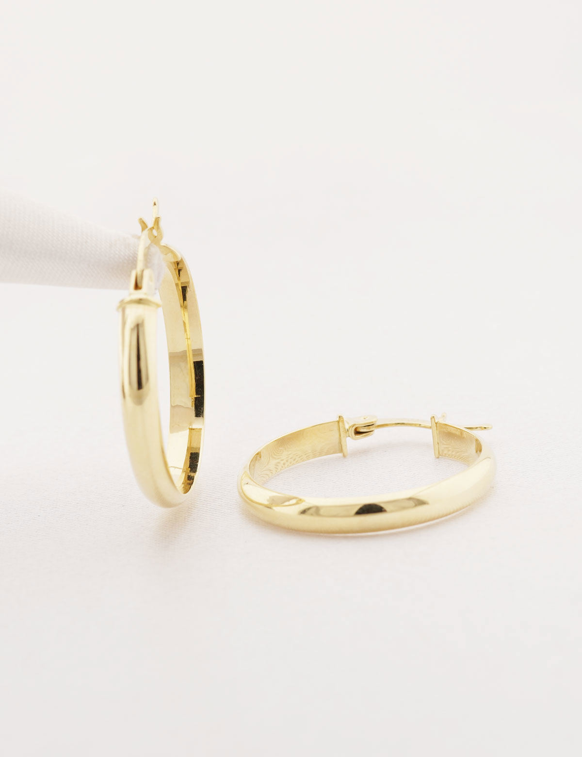 Klasik Parlak 14 Ayar Altın Halka Küpe-Büyük Boy