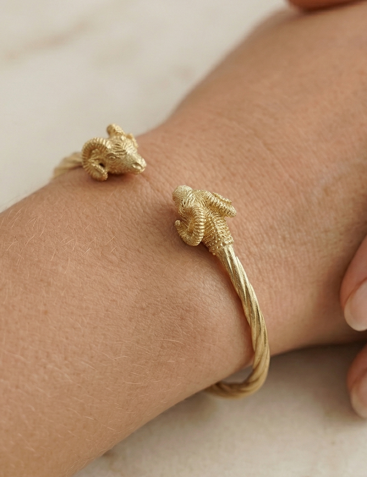 • Koç Başı Altın Kelepçe Bileklik- 14 Ayar