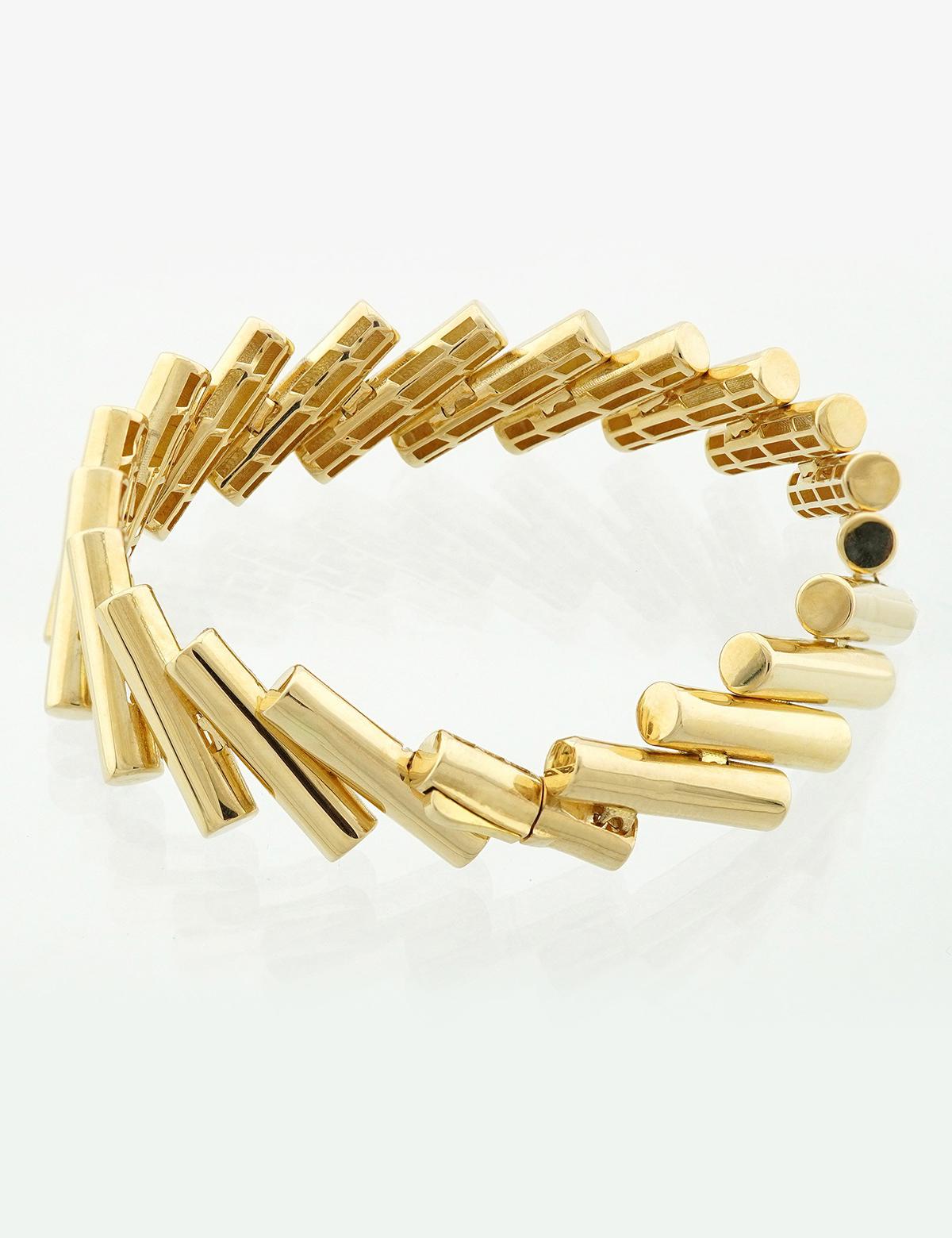 14 ayar sarı altın ile ürettiğimiz Melodi Bar Altın Bileklik' imiz tamamen parlaktır. Melodi ritimlerini andıran dinamik çubuklarıyla öne çıkıyor. Her bir parçası, tıpkı müziğin ritmi gibi akıcı bir uyum içinde birleşerek bileğinizde modern ve sanatsal bir duruş sergiler.