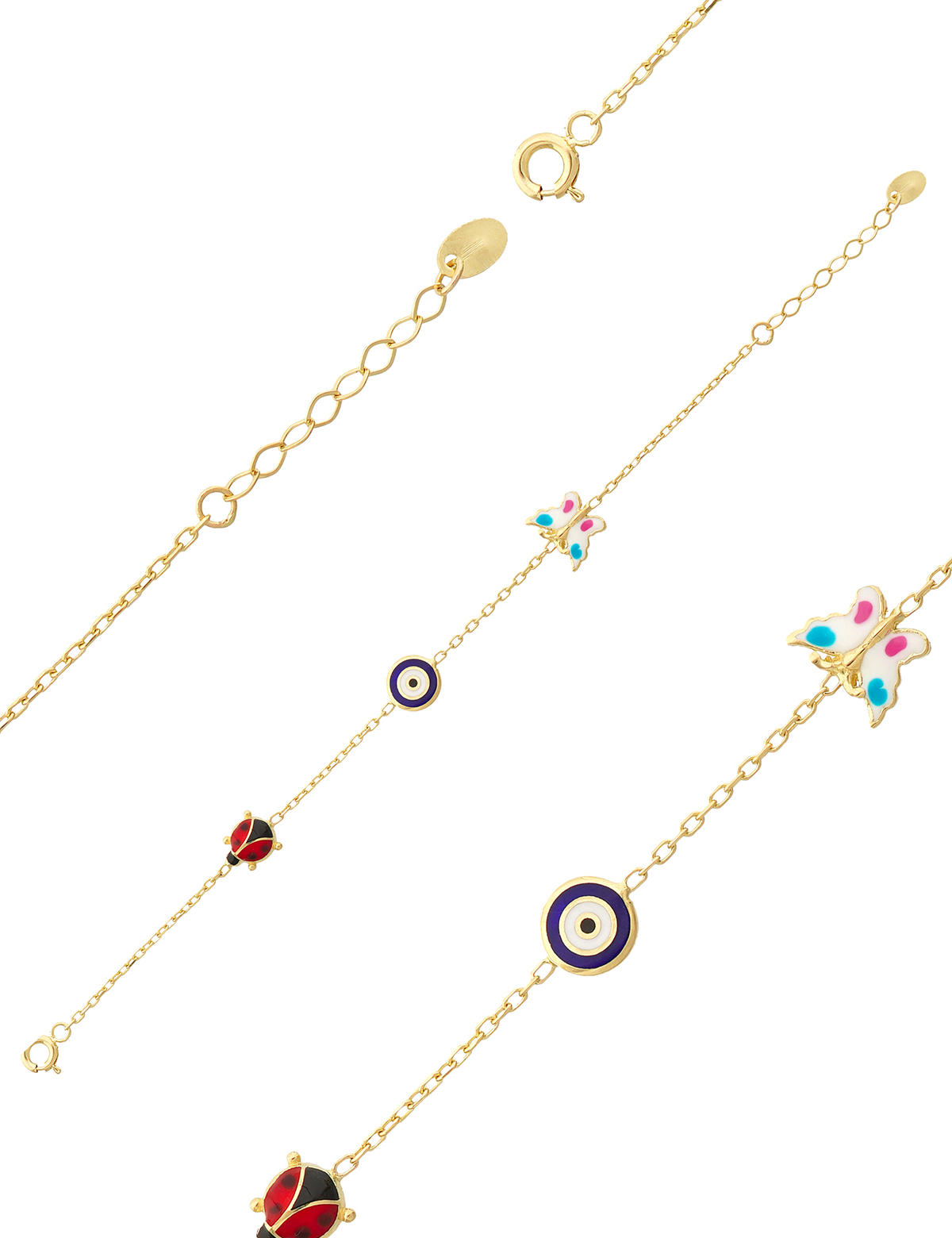 Mineli Çocuk Bilekliği - Uğur Böceği, Nazar Gözü, Kelebek Figürlü