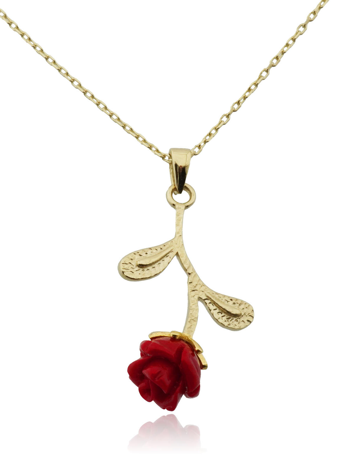 14 ayar sarı altın ile ürettiğimiz Mineli Gül Altın Kolyemiz tamamen parlaktır. Sıradan taşlı kolyelerin aksine, gülün kırmızı renkgi altın üzerine uygulanan özel mine tekniği ile verilmiştir.  Gülün sap ve yaprak kısımlarındaki ince kalem işçiliği ve dokulu yüzey, tasarıma derinlik katarak gerçekçi bir form kazandırır. Günlük kullanımda şıklığınızı tamamlayacak zamansız bir modeldir.