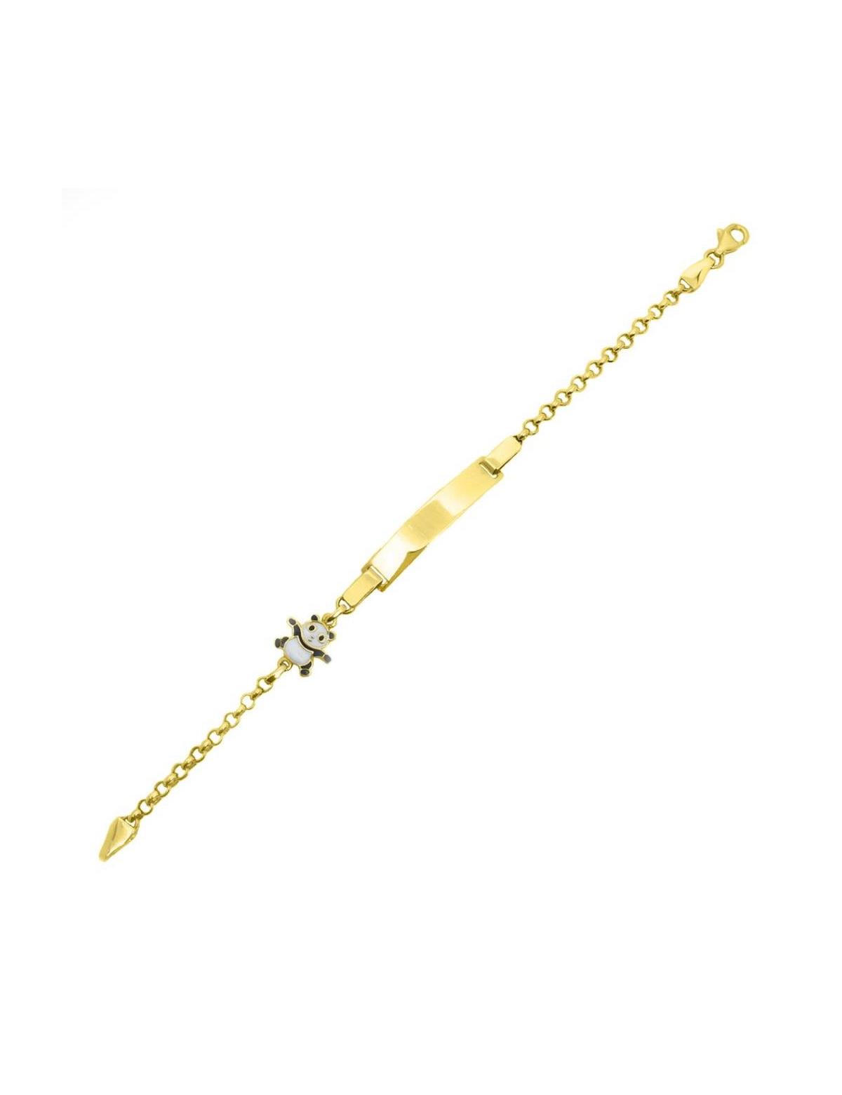 14 ayar sarı altın ile ürettiğimiz; Panda Altın Çocuk Künye Bileklik tamamen parlaktır. Aslında Plakalı Bebek Künye 'si olarak da ifade edebiliriz. Çünkü zincirin dilediğiniz halkasından kilidini bağlayarak 0-12 yaş arası kullabileceğiniz bir Altın Çocuk Bileklik 'tir. Dilediğiniz yazı karakteri ile üzerine yazmamızı talep edebilirsiniz.