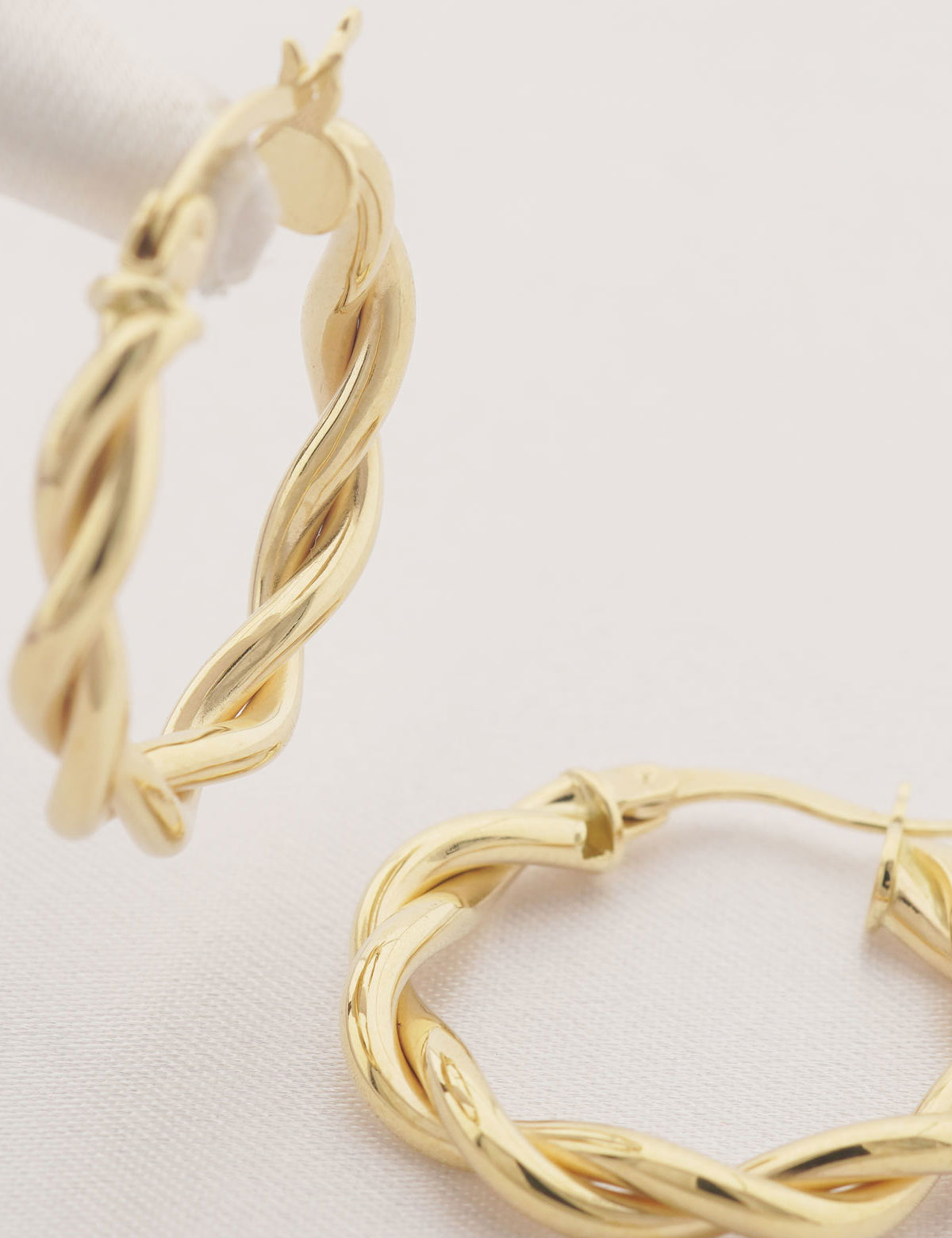 Parlak Çift Burgu 14 Ayar Altın Halka Küpe-Büyük Boy