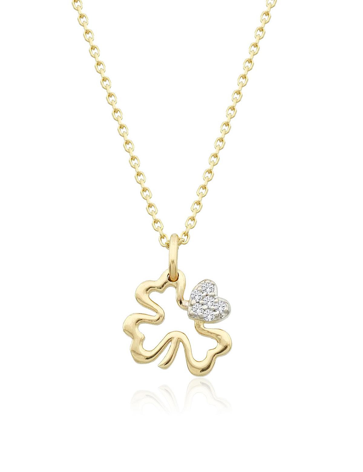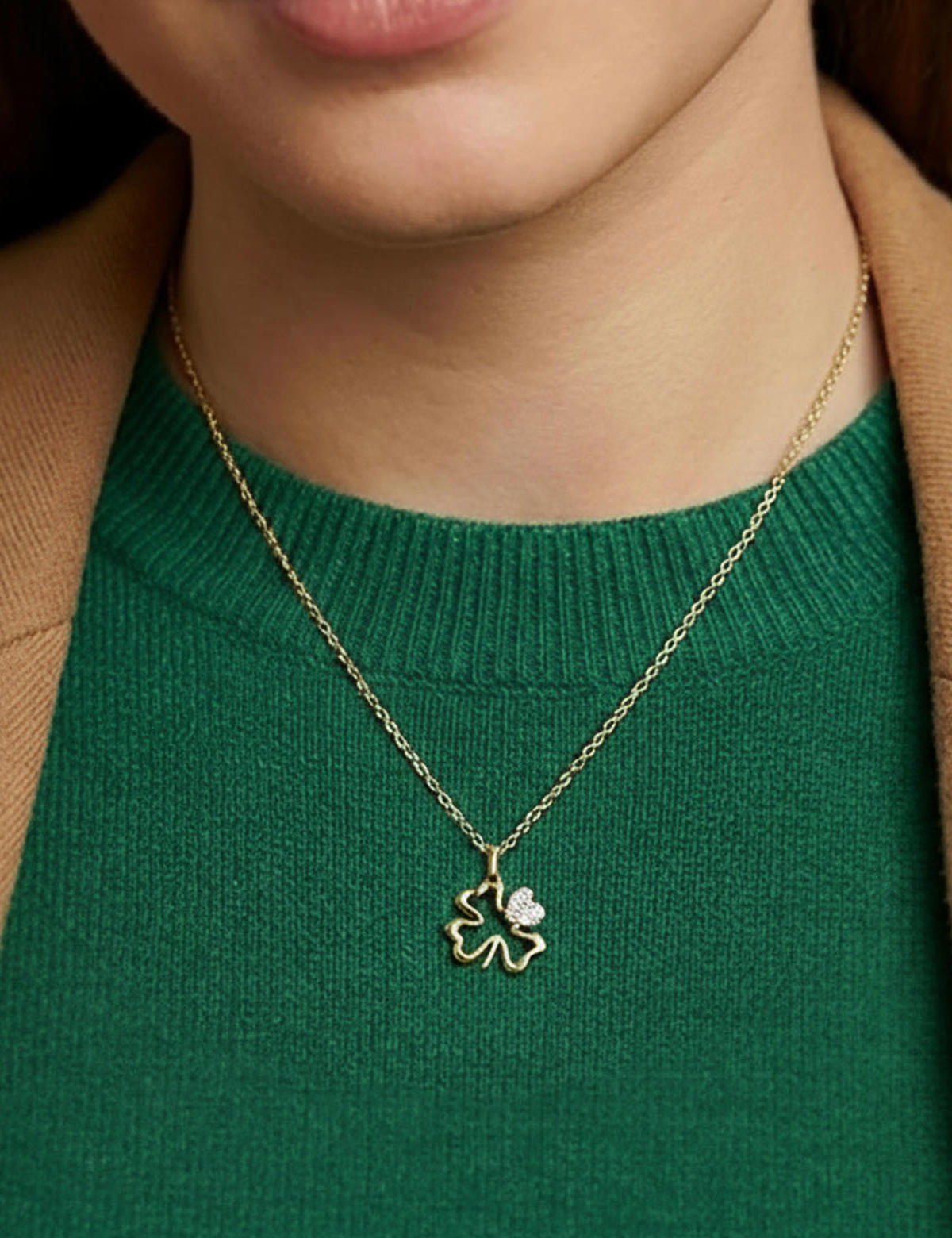 14 Ayar Altın Çift Kat Kalp Yonca Kolye