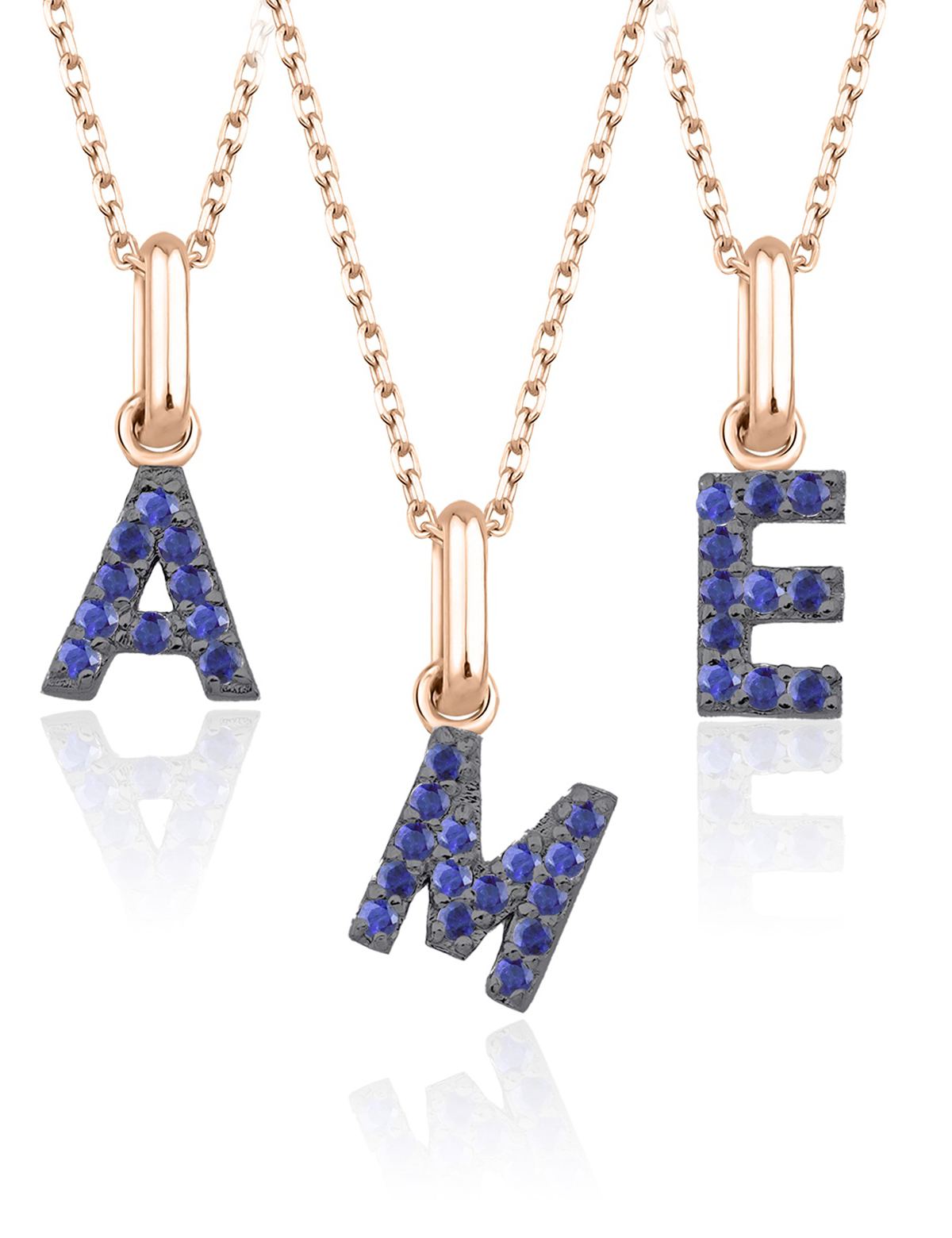 Doğal Safir Harf Kolye / Küçük Boy resmi