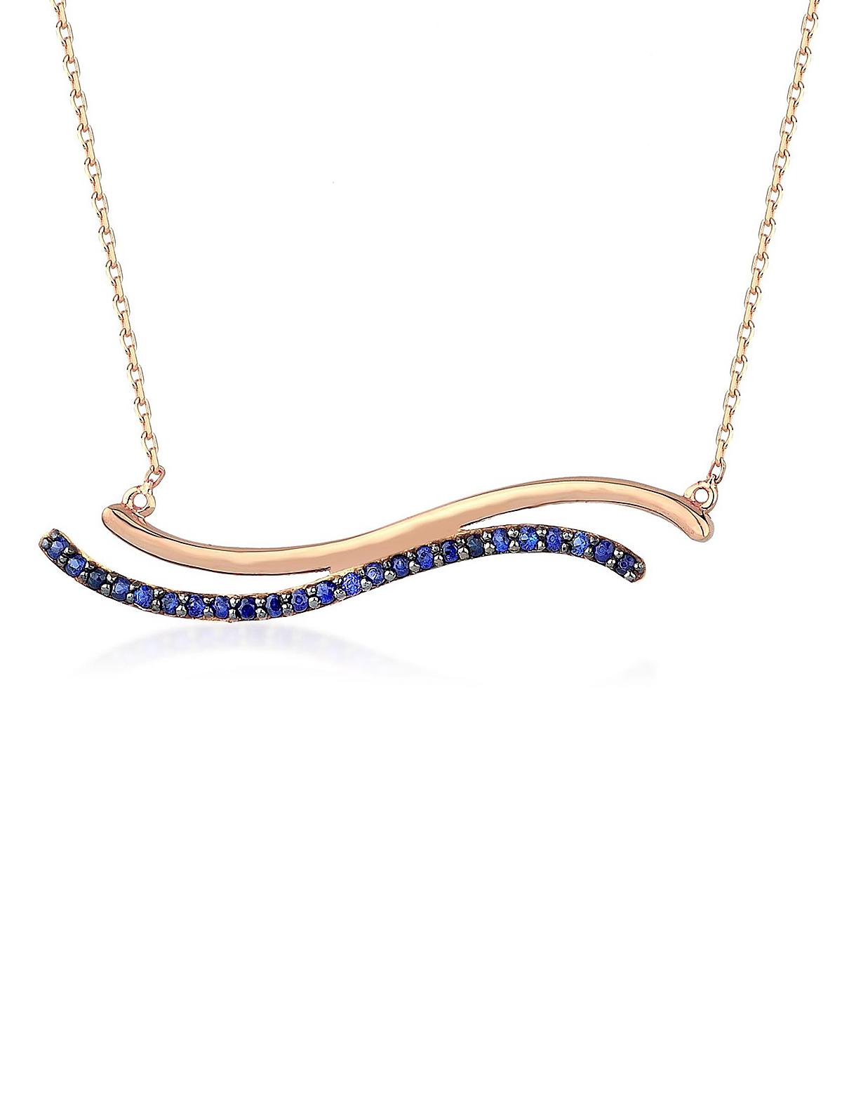 İkiz S Safir Kolye 'mizin yatay "S" çizgileri art-nevue stilini çağrışıtırıyor. Pembe altın kolyemiz ( rose gold ) tamamen parlaktır. Safirlerin su yolu biçiminde sıralanması renk tonlarını daha çok ortaya çıkartıyor ve böylelikle her açıdan ışıldıyor. Mücevher seven kadınların üzerinden hiç çıkartmak istemeyeceği bir safir kolye.