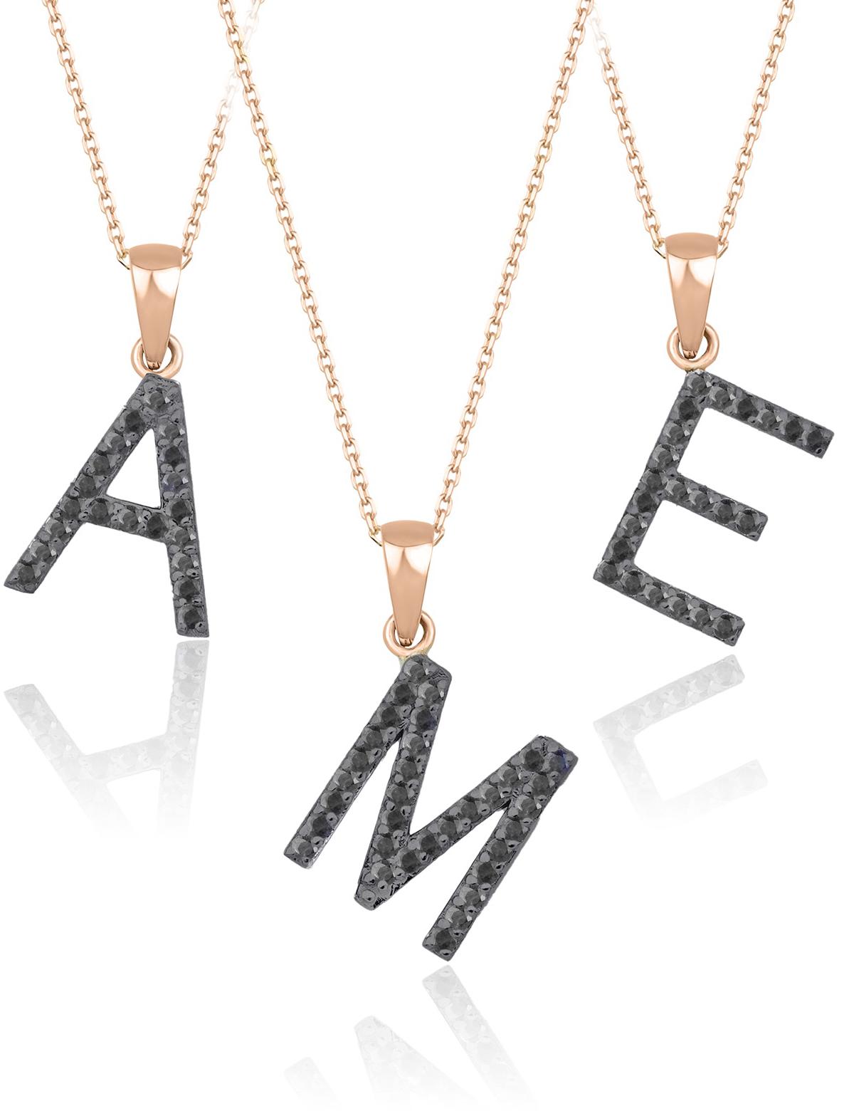 Siyah Pırlanta Harf Kolye / Orta Boy
