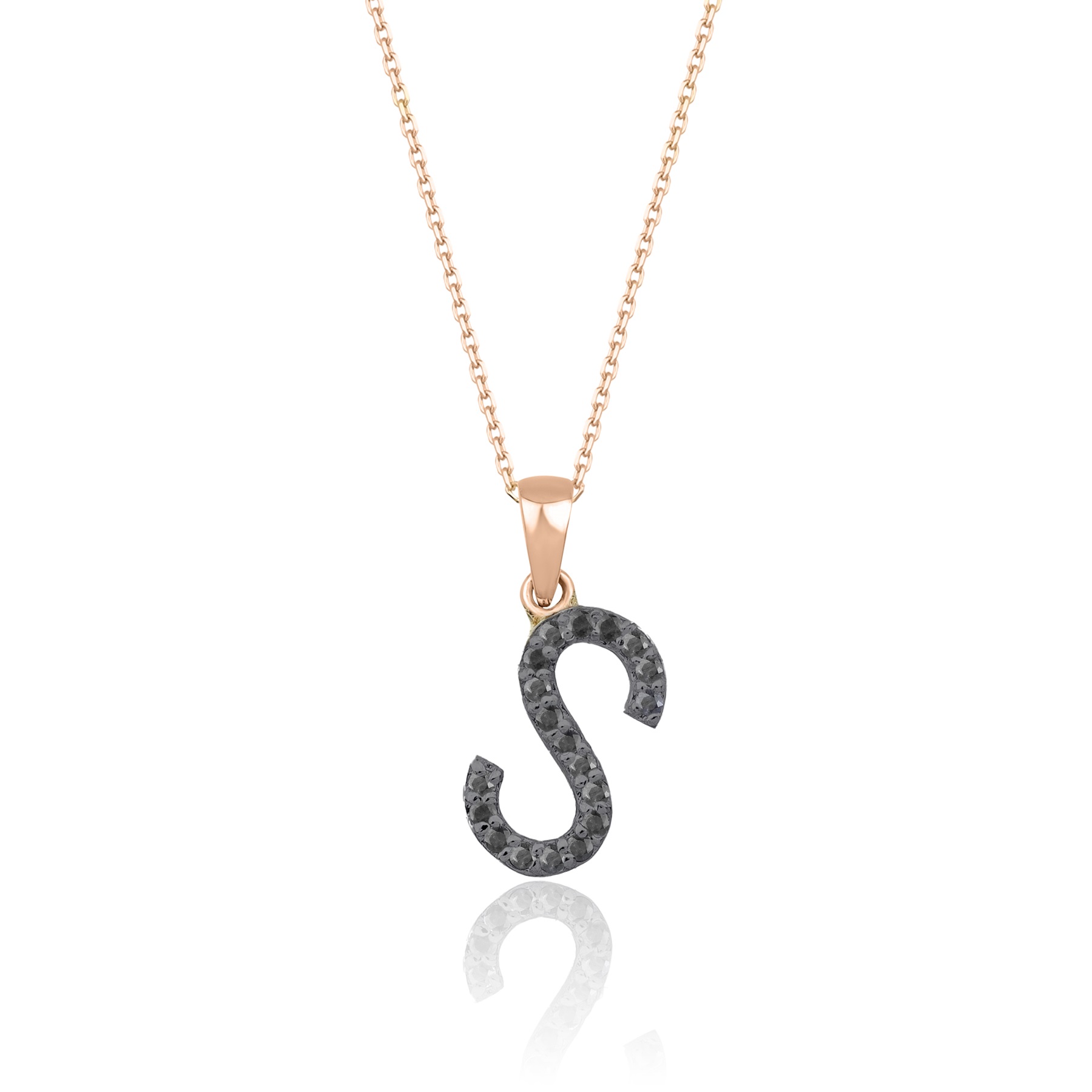 Siyah Pırlanta Harf Kolye / Küçük Boy