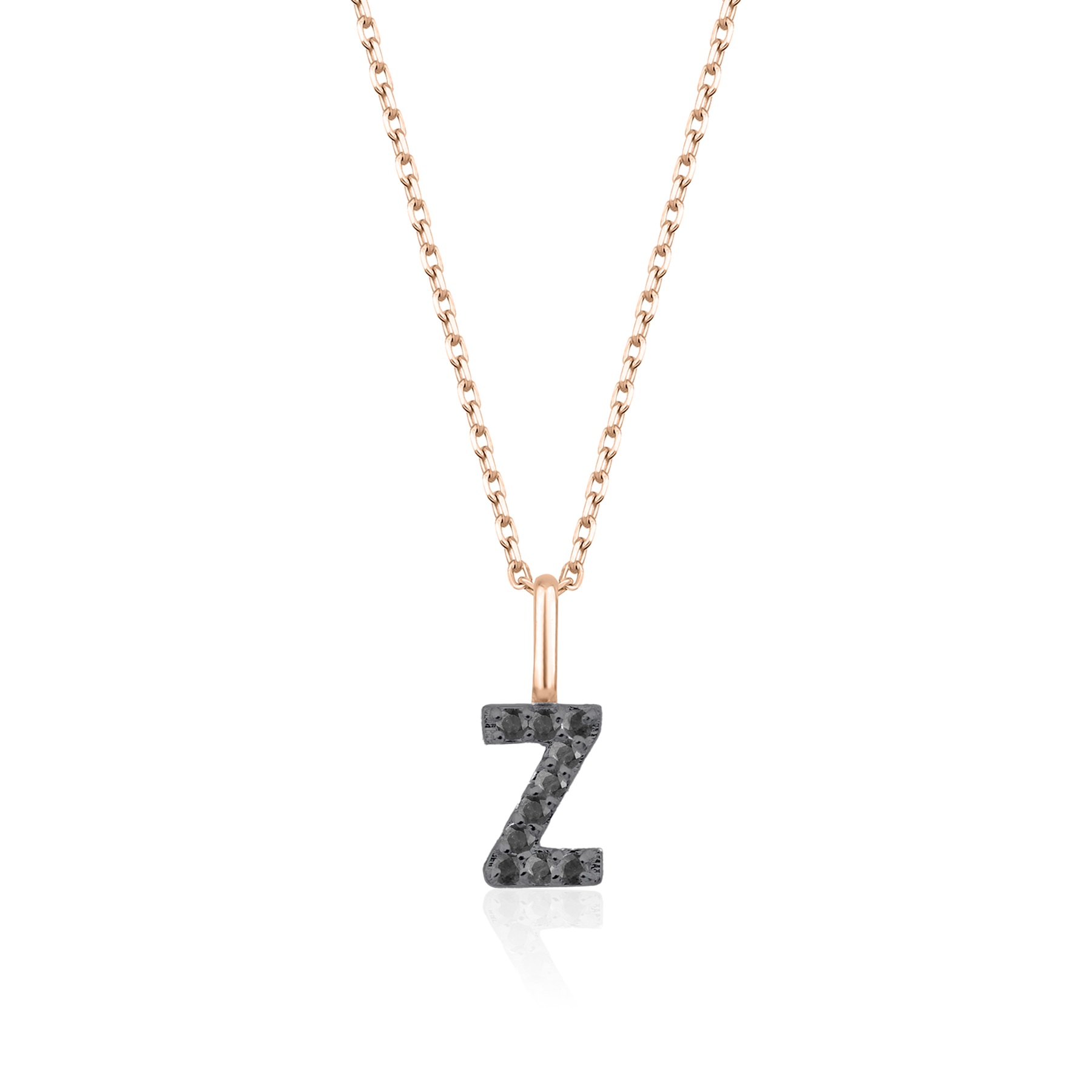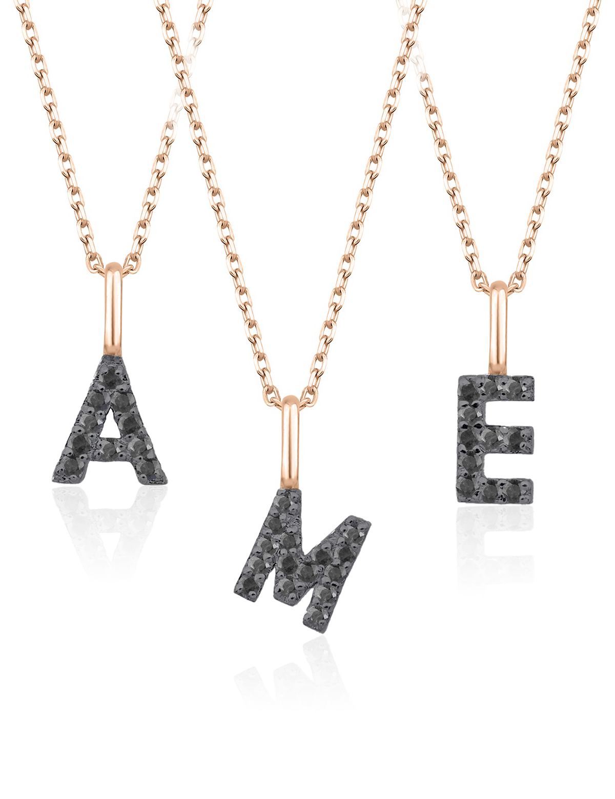 Siyah Pırlanta Harf Kolye / Orta Boy