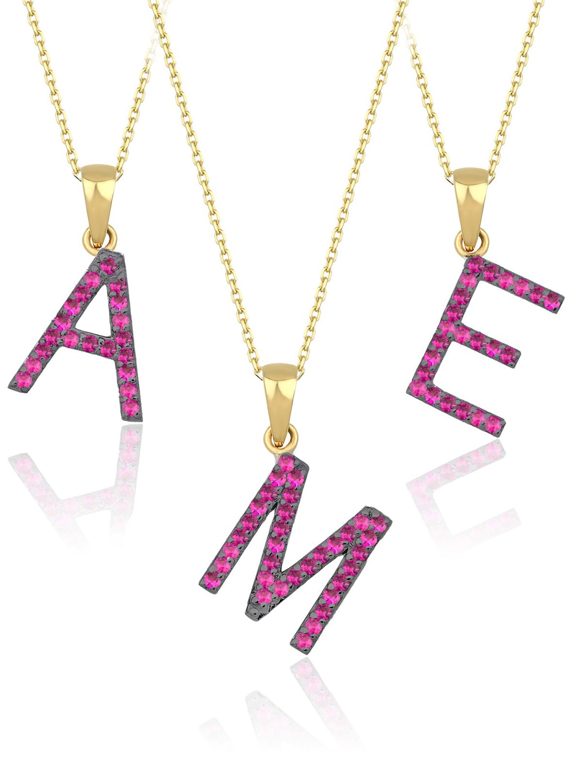 14 ayar sarı altın kullandığımız harf kolyelerimizi doğal yakut ile süsledik.. Zarif ışıltısıyla sürekli size göz kırpacak olan yakut harf kolyeleri, zamansız tasarımı ile her an sizinle.