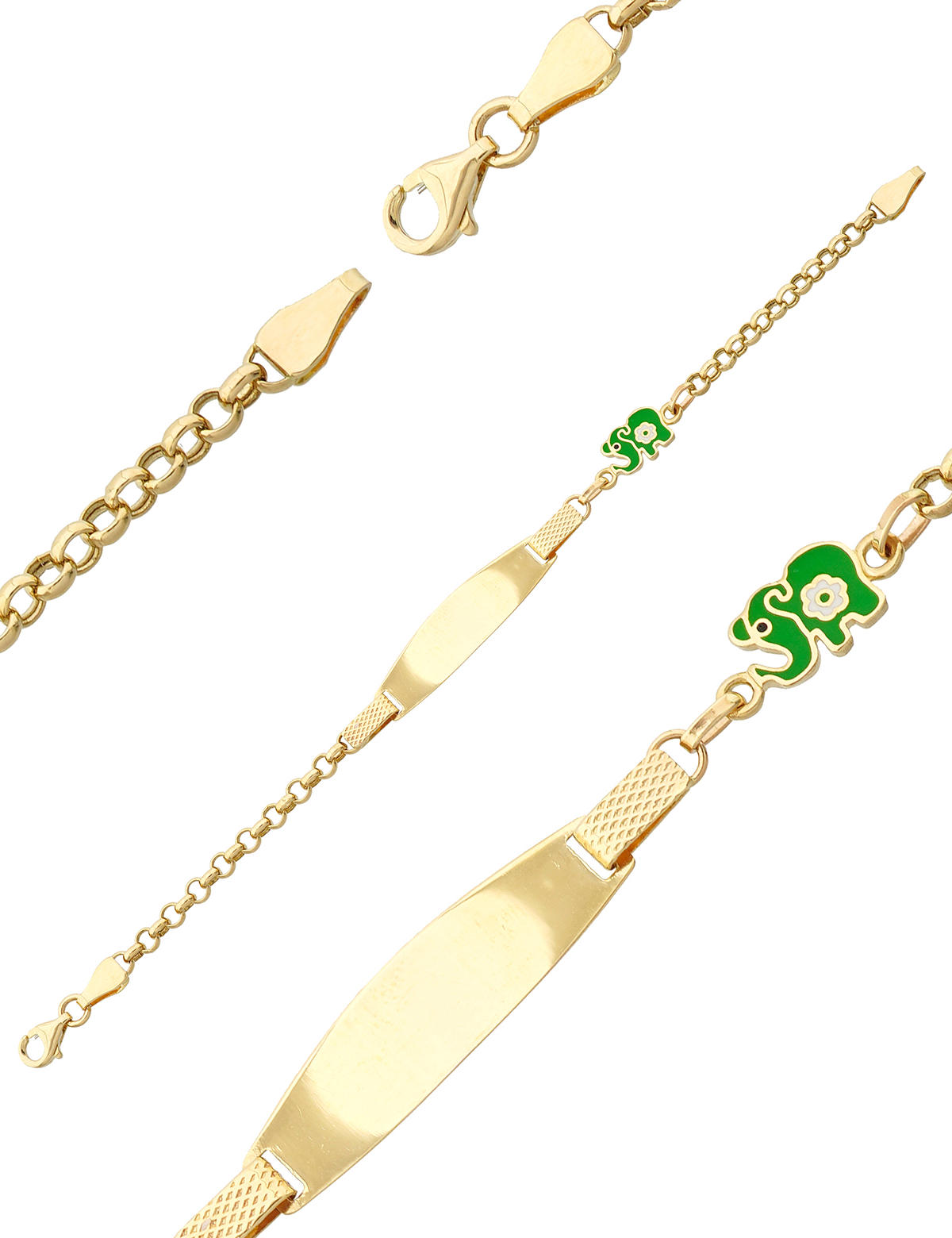 Yeşil Fil Altın Çocuk Künye Bileklik resmi