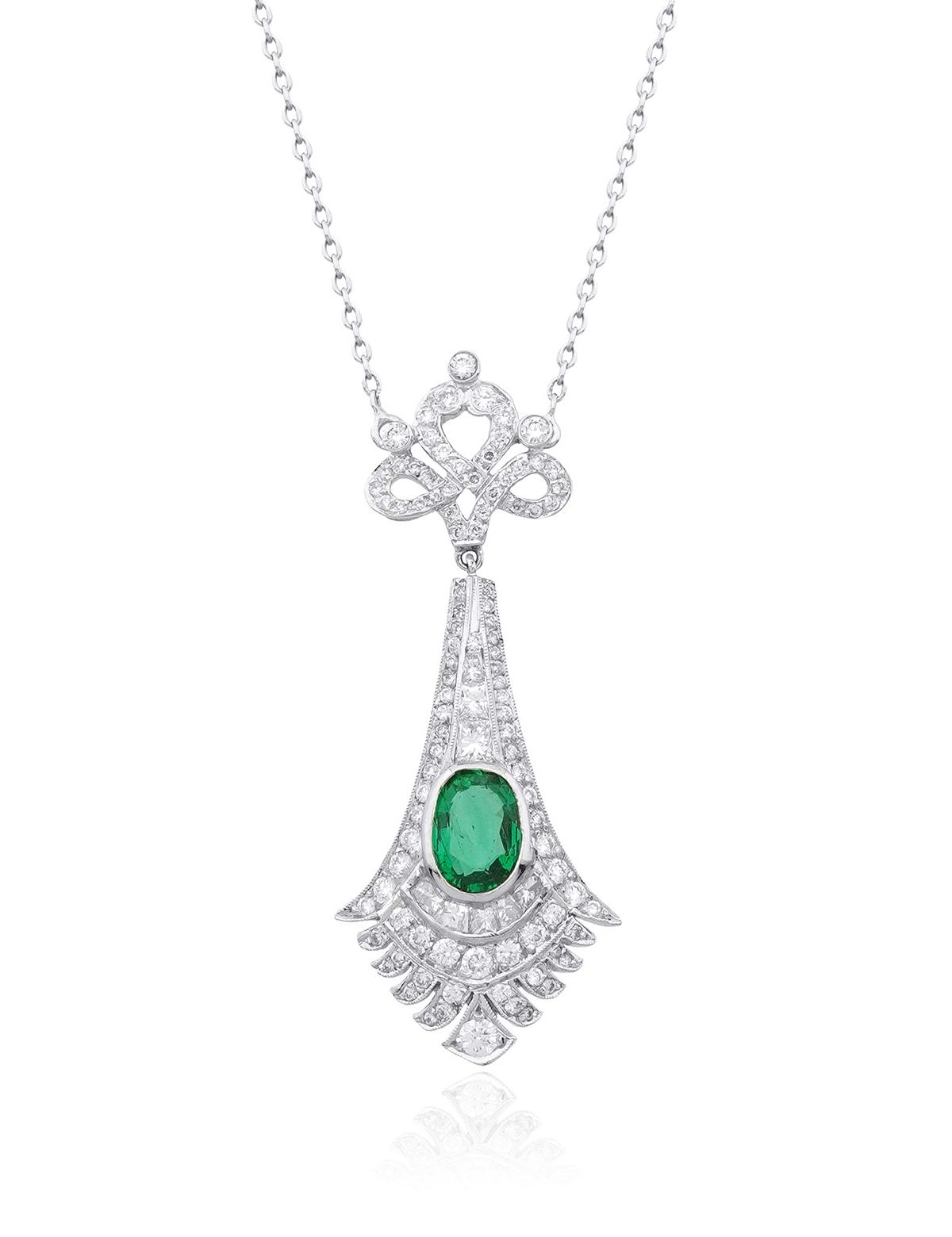 Zeytin Dalı Pırlanta Zümrüt Kolye